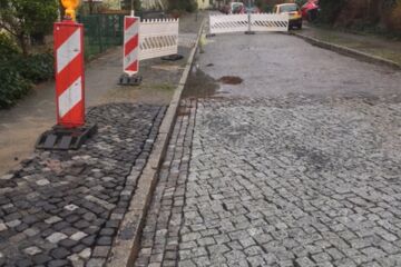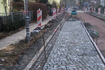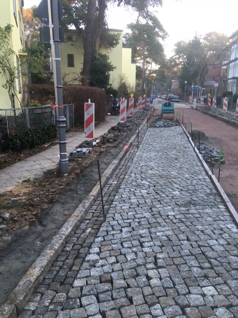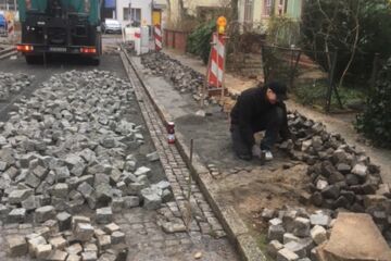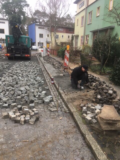 Neuanlage von Pflasterstraßen, Zufahrten und Wegen aus Naturstein- und Betonpflaster und Asphalt.